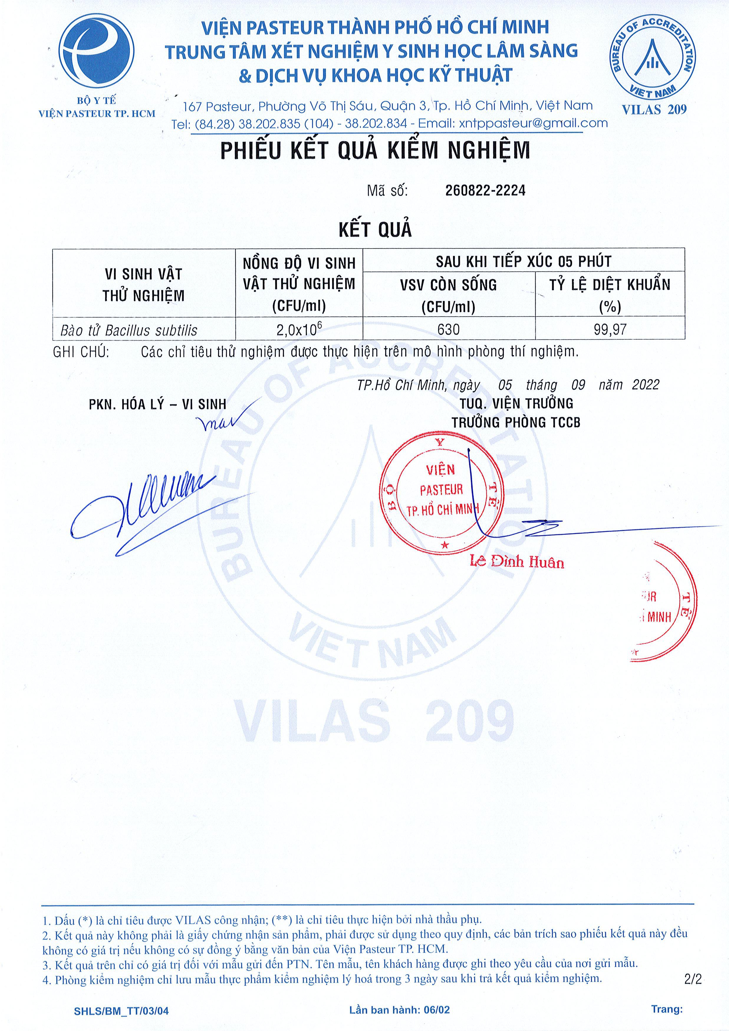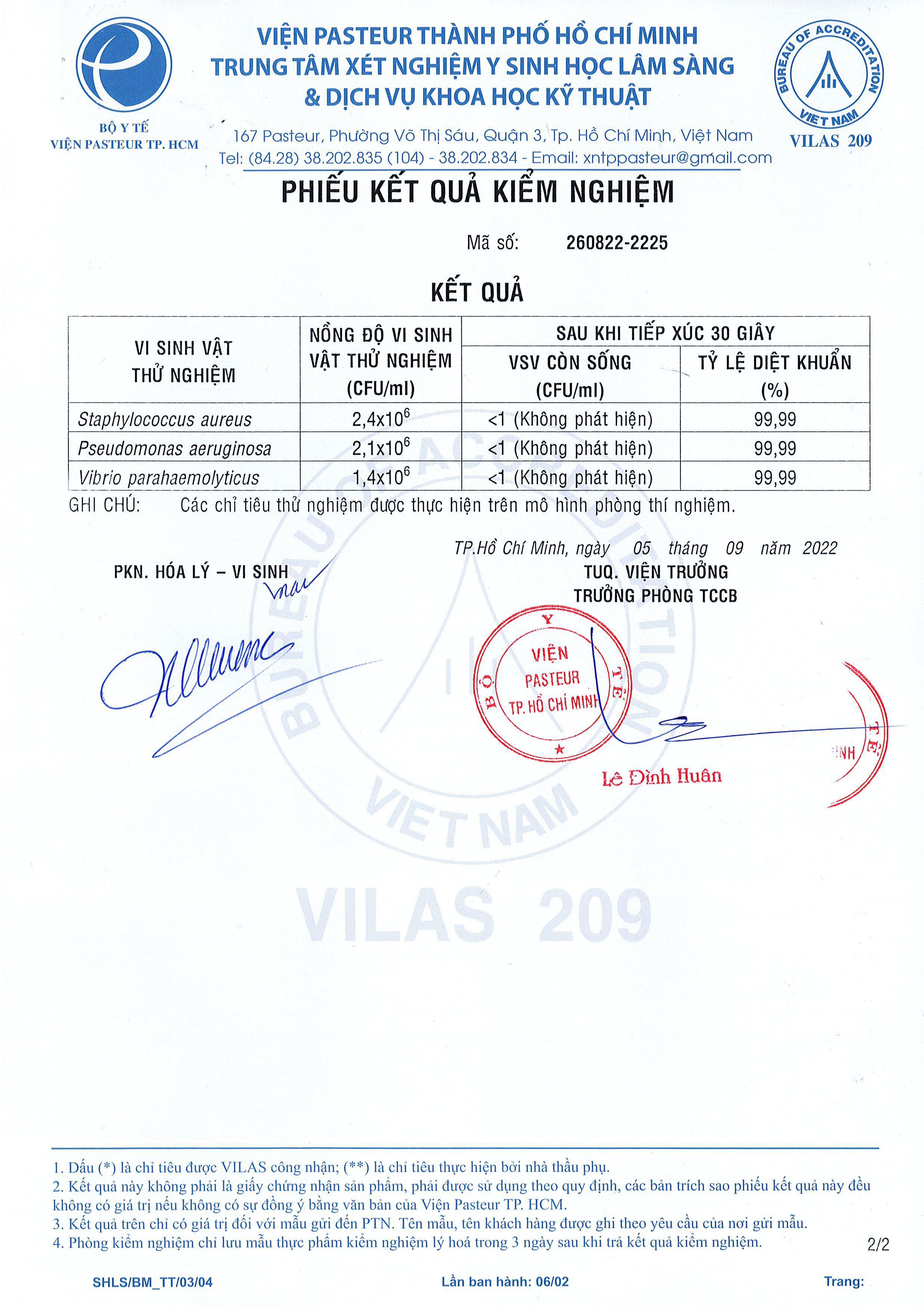 Kết quả kiểm nghiệm