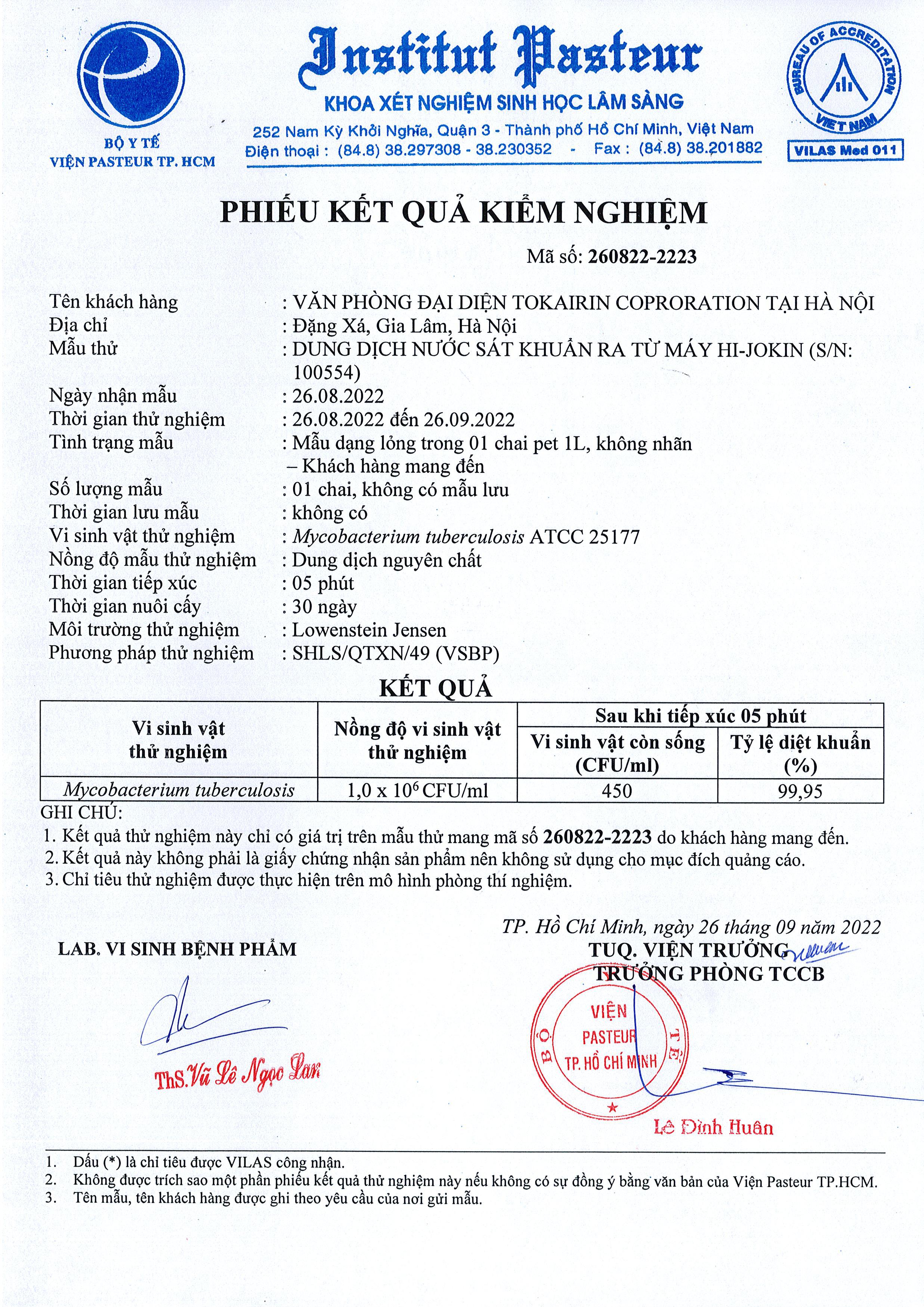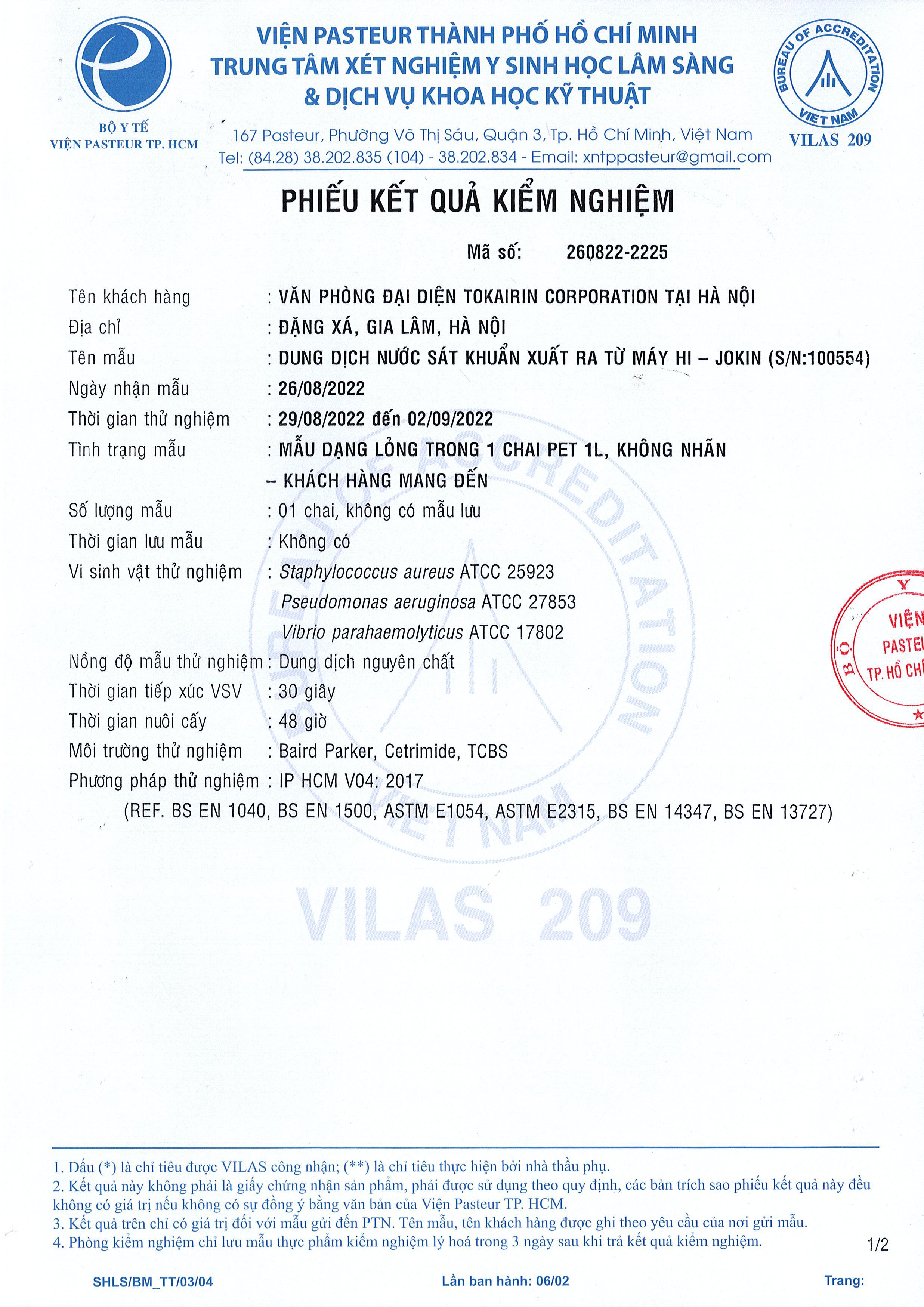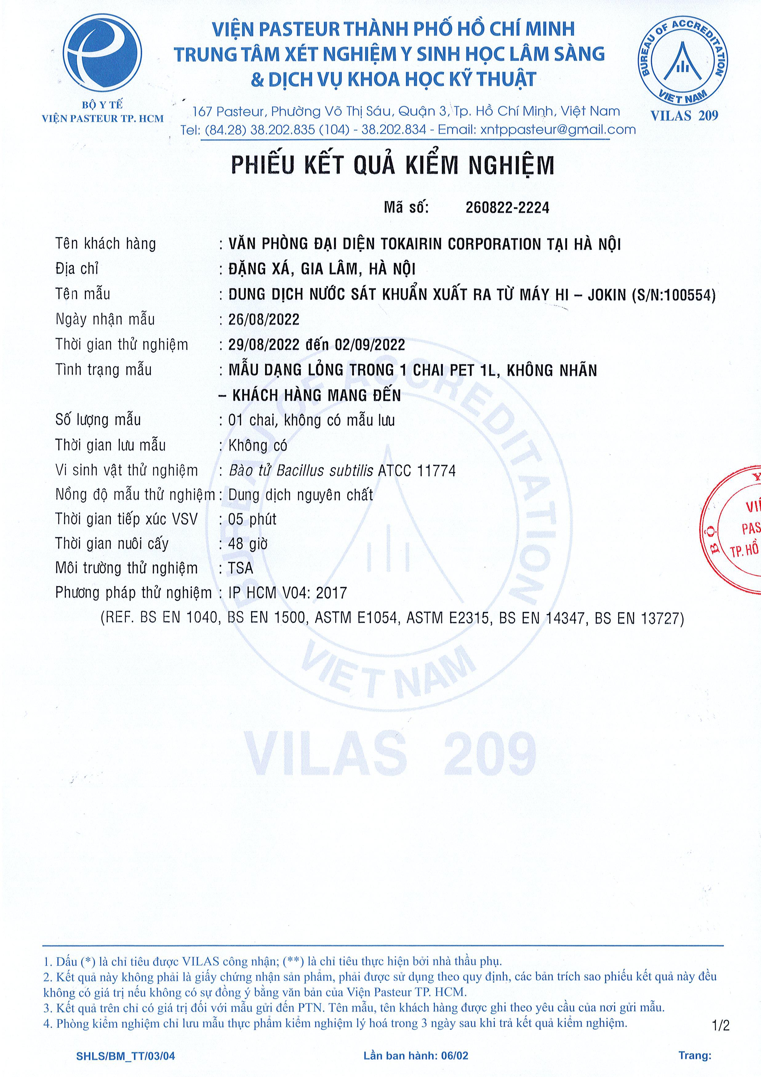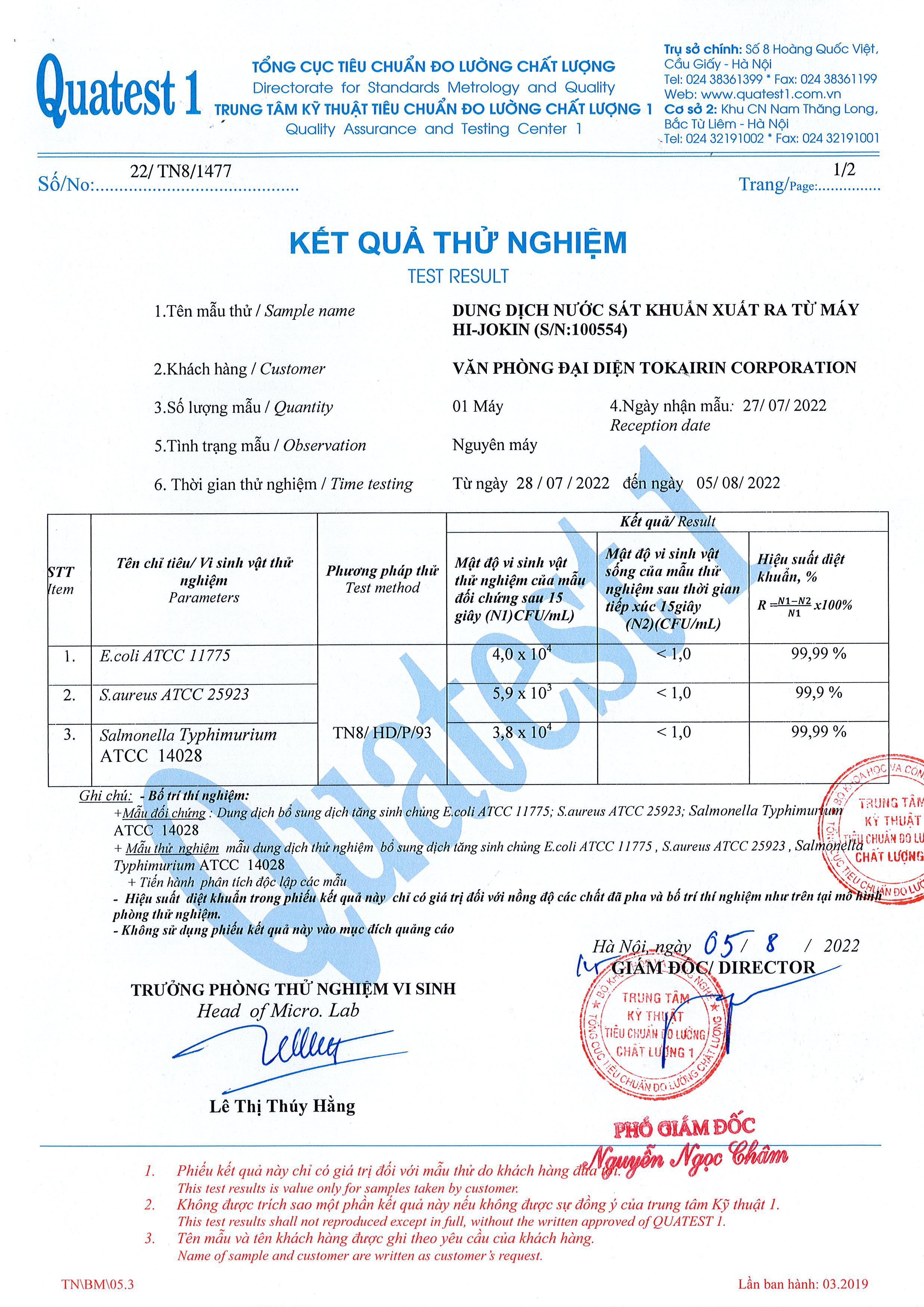 Phiếu kết quả kiểm nghiệm